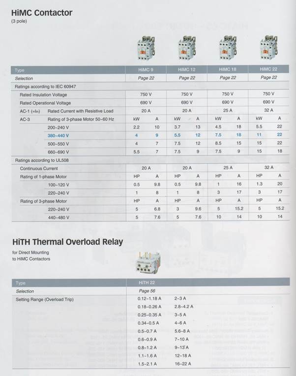 HiMC CONTACTOR SPECIFICATIONS – HiMC9-HiMC22